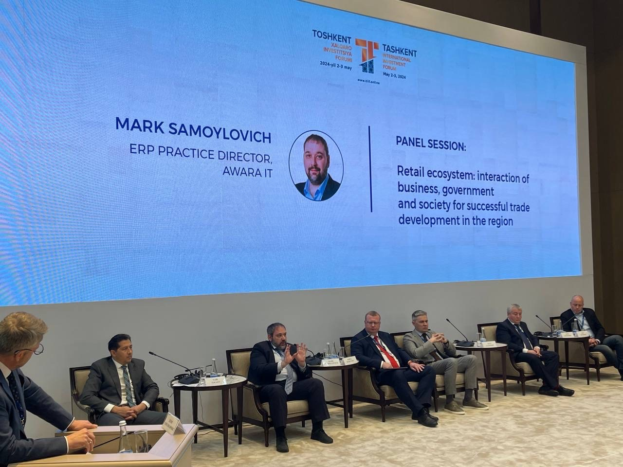 Mark Samoilovich took part in the panel session "Retail ecosystem: interaction of business, government, and society for successful trade development in the region" and spoke about the opportunities that Awara IT solutions offer to large retail businesses.