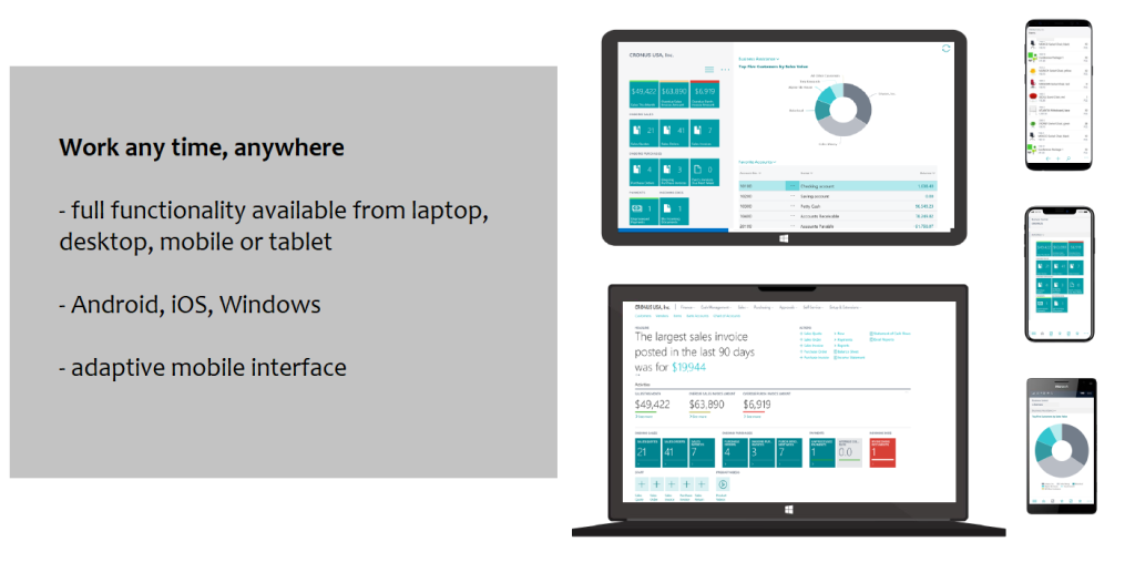 Even complex processes should be accessible on tablets or mobile devices. For example, Awara IT implemented a project in Italy where 400+ employees (sales teams and engineers) used Microsoft Dynamics 365 BC on tablets to: