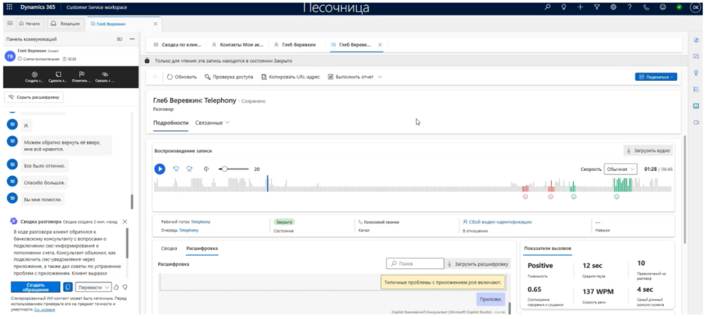 Единое рабочее место. Уже сегодня на рынке представлены готовые решения для продуктивной операторов колл-центров. Они работают в формате омниканальности, собирая в “одном окне” месенджеры, почту, соцсети и CRM систему. В таком едином документе собрана вся информация о конкретном клиенте, что помогает решать его запрос гладко и в режиме реального времени. На примере ниже - Microsoft Dynamics 365 Customer Service.